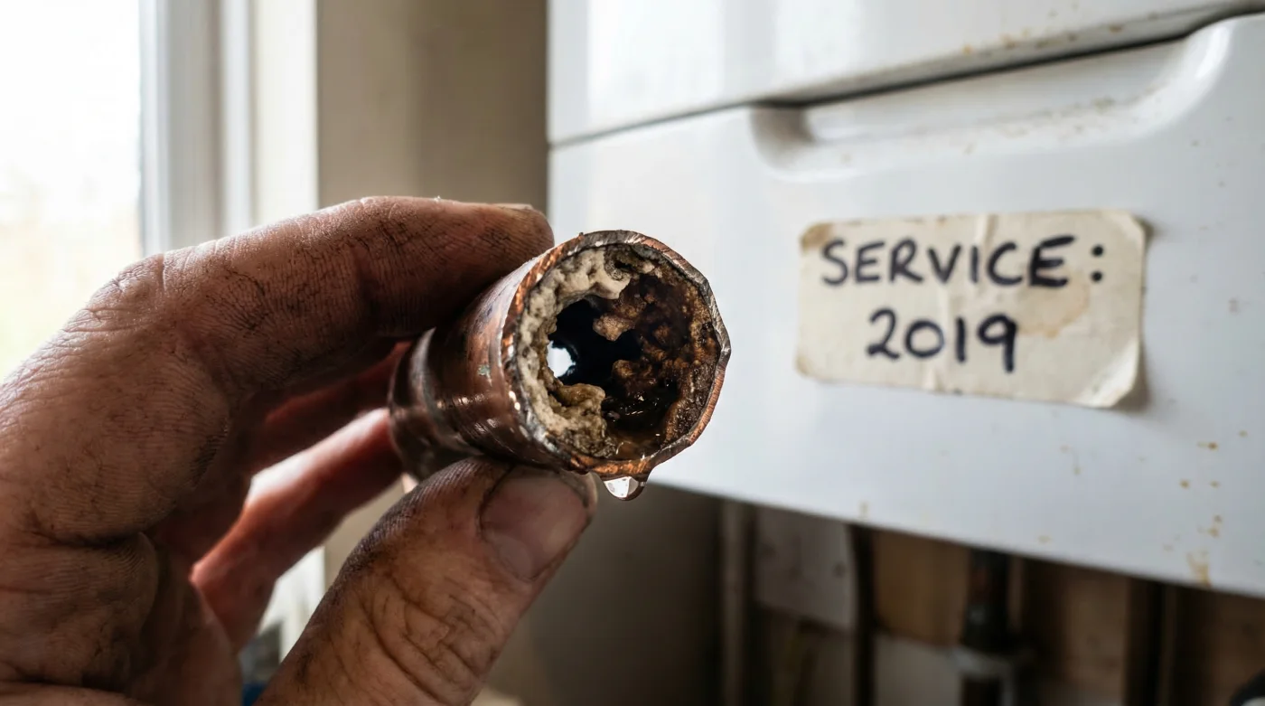 • Semptom: Kombi pompasından veya borulardan gelen alışılmadık uğultu ve çarpma sesleri. = Neden: Daralan boru çapları nedeniyle suyun geçiş hızının artması ve pompada oluşan aşırı hidrolik basınç dalgalanmaları.