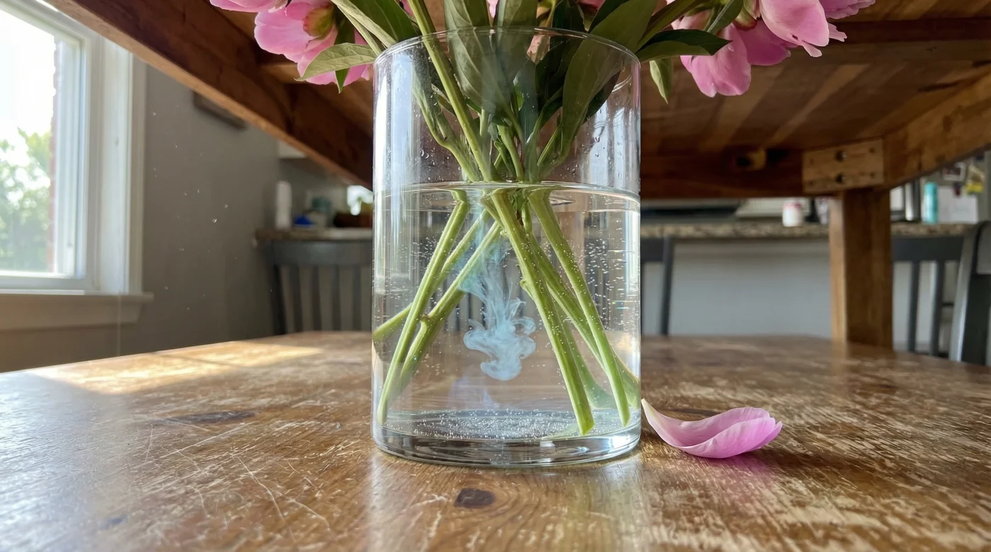 Kesme çiçeklerin bu kadar hızlı solmasının asıl nedeni suyun yetersizliği değil, vazo suyunda hızla üreyen bakterilerdir. Bu bakteriler çiçek saplarının uçlarında birikerek su kanallarını tıkar ve sapların çürümesine neden olur. Su alamayan çiçek de kısa sürede ölür. İşte tam bu noktada sıradan bir banyo ürünü devreye giriyor.