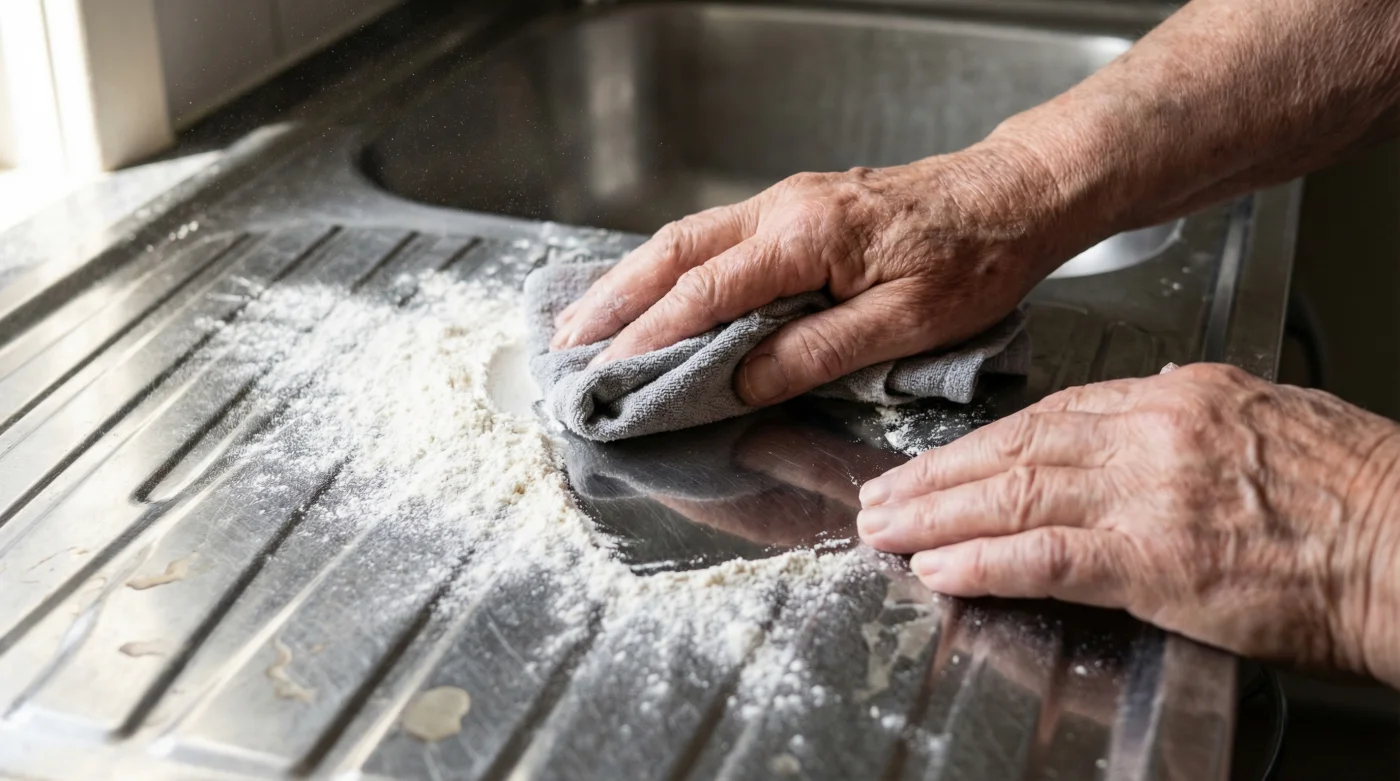 Lavabonuzun yüzeyinde yemek artığı, yağ veya eski temizleyici kalıntıları varken Buğday unu işlemi yapılamaz. Öncelikle lavabonuzu 40°C sıcaklığında ılık su ve birkaç damla standart bulaşık deterjanı ile köpürterek yıkayın. Yumuşak bir mikrofiber bezle tüm kiri arındırdıktan sonra durulayın. İşin en hayati noktası burasıdır: Lavabonun tamamen, hatta mikroskobik düzeyde kuru olması gerekir. Kağıt havlu veya temiz bir kurulama bezi kullanarak musluk dipleri de dahil olmak üzere lavaboda tek bir su damlası kalmadığından emin olun. Gerekirse tam kuruma için 10 dakika havalanmaya bırakın.