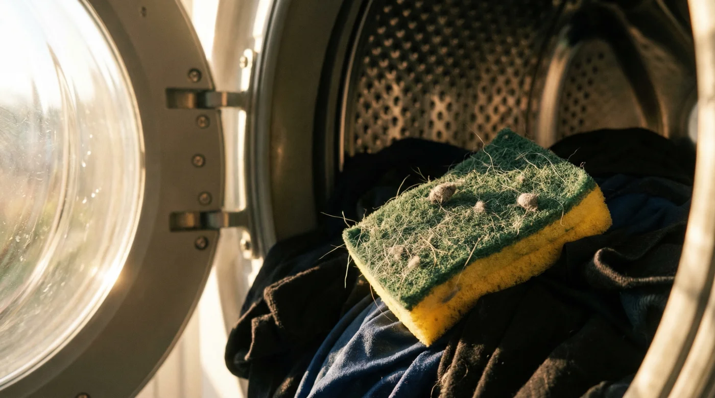 Çamaşır makinesinin tamburuna temiz ve kullanılmamış bir bulaşık süngeri eklediğinizde, yıkama döngüsü sırasında sünger bir mıknatıs görevi görür. Süngerin gözenekli ve hafif pürüzlü yapısı, suyun içinde serbestçe hareket ederken kıyafetlerden kopan evcil hayvan tüylerini, saç tellerini ve havları kendi üzerine çeker ve hapseder. Sonuç? Yıkama bittiğinde tertemiz ve tüyden arınmış kıyafetler!