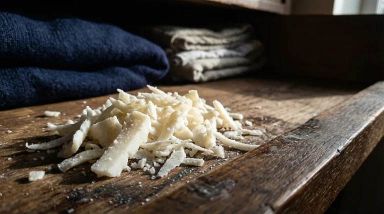 Çekmecelere rendelenen beyaz kalıp sabun kıyafetlerdeki küf kokusunu yıllarca engelliyor.